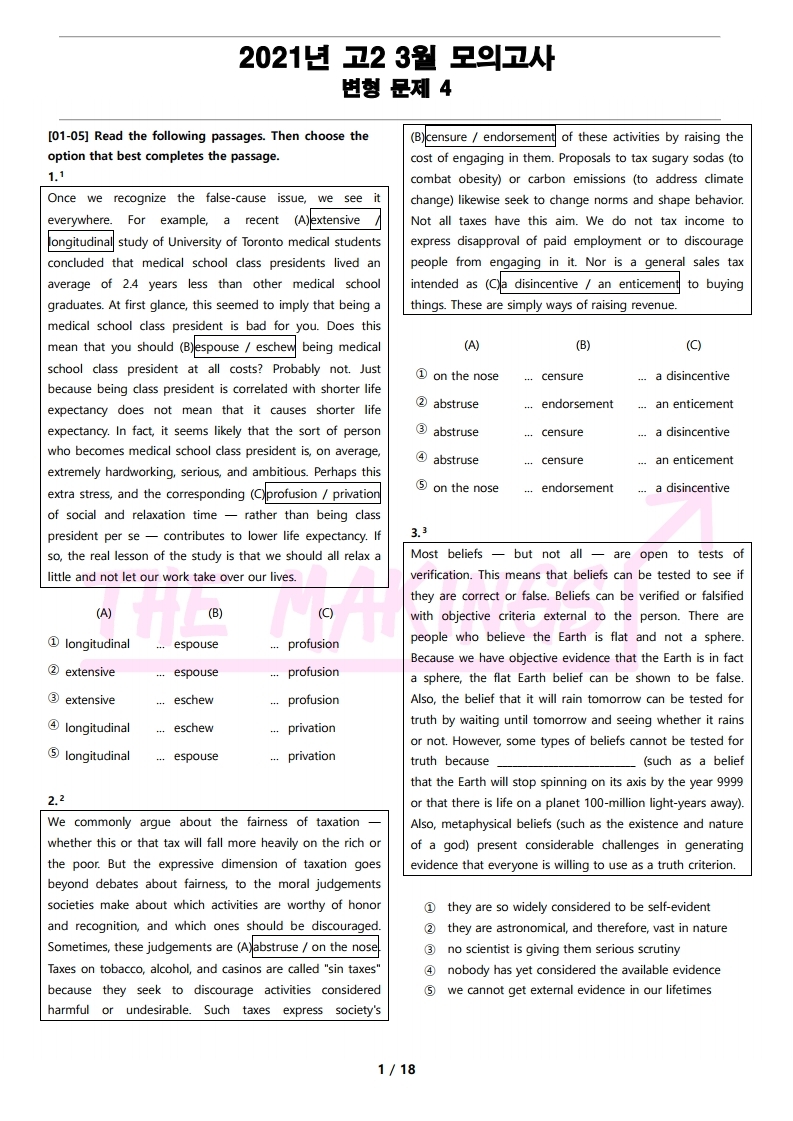 중간고사&기말고사 전에 더메이킹스(The Makings)에서 제작한 2021년 고2 3월 전국 연합 모의고사 변형 문제로 마무리 하세요.