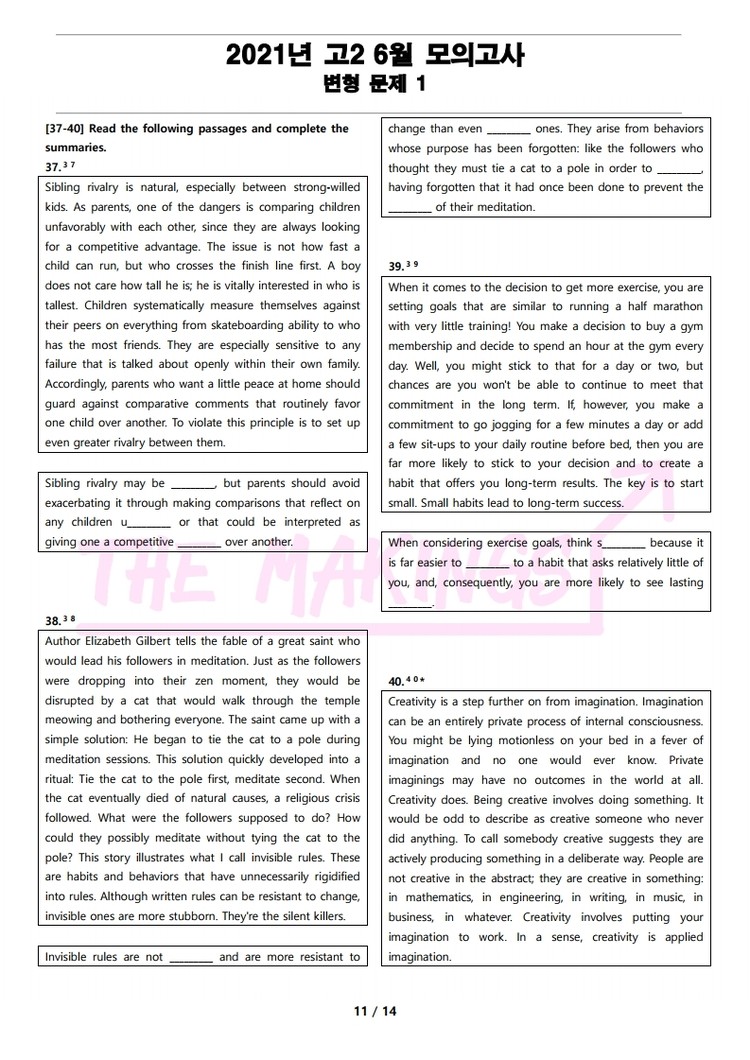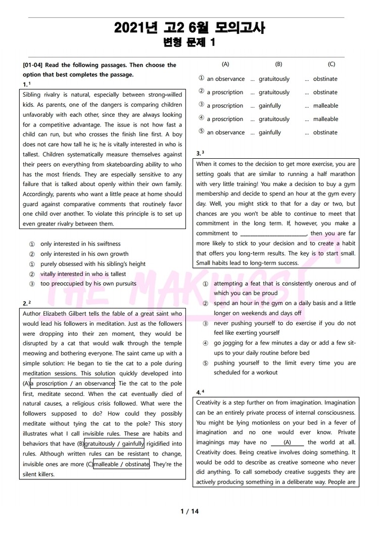일반 워크북 형태의 문제에서 벗어나 The Makings가 만든 2021년 고2 6월 전국 연합 모의고사 변형 문제 1