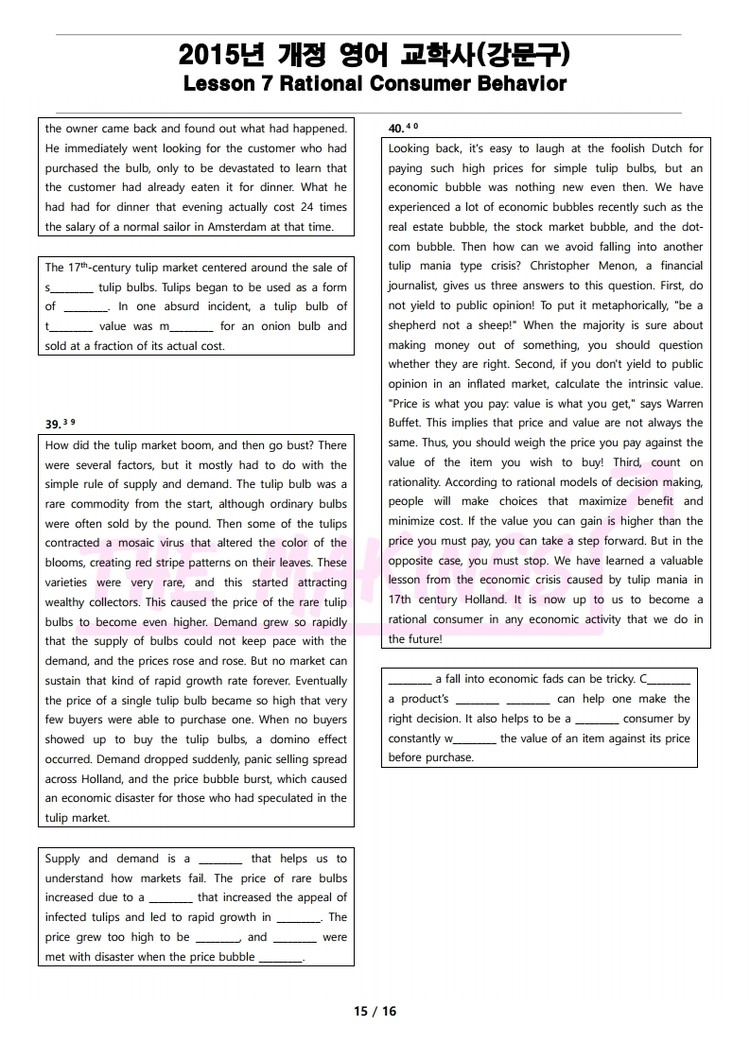 2015년 개정 영어 I 교학사(강문구) 7과 변형 문제 Rational Consumer Behavior
