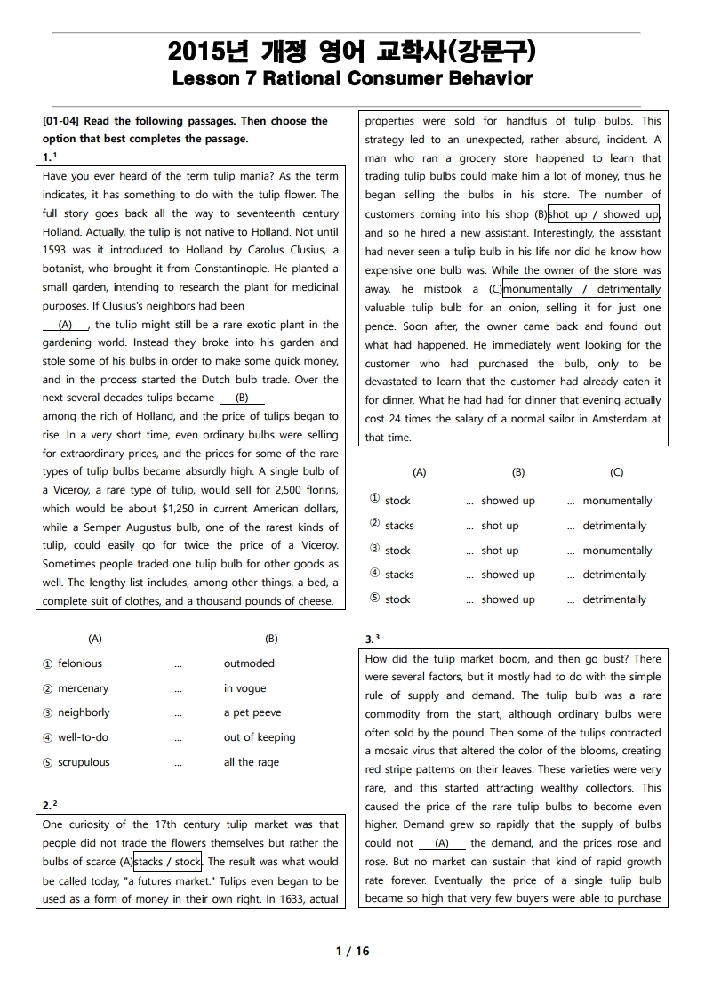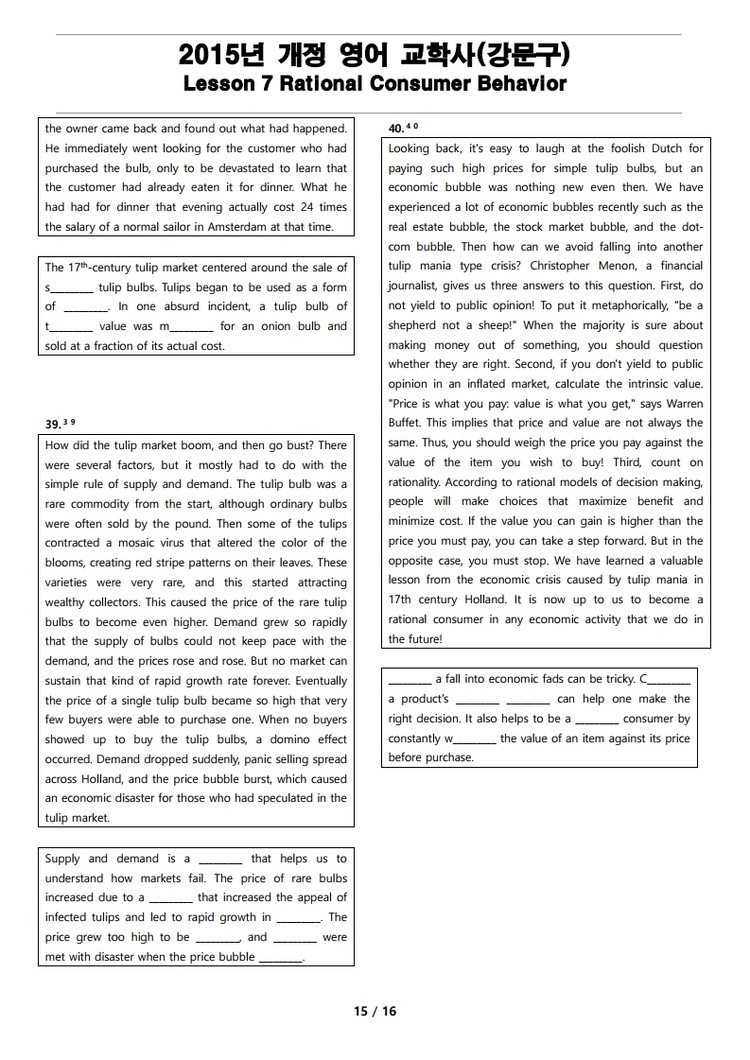 2015년 개정 영어 I 교학사(강문구) 7과 변형 문제 Rational Consumer Behavior