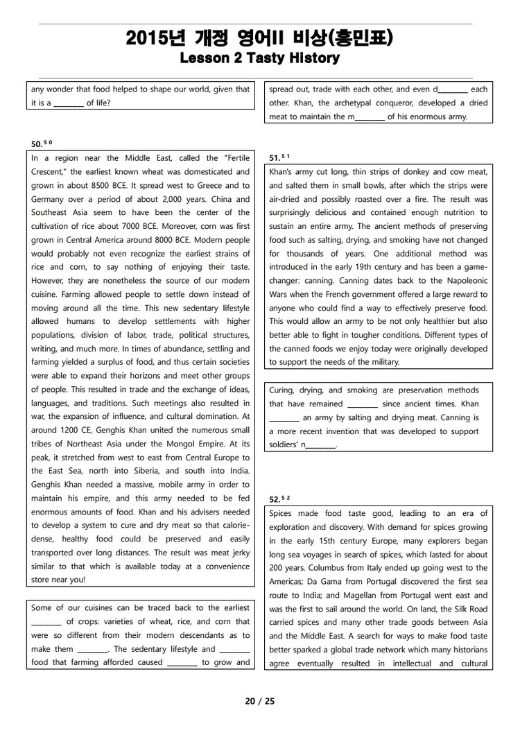 2015년 개정 영어 II 비상(홍민표) 2과 변형 문제 Tasty History