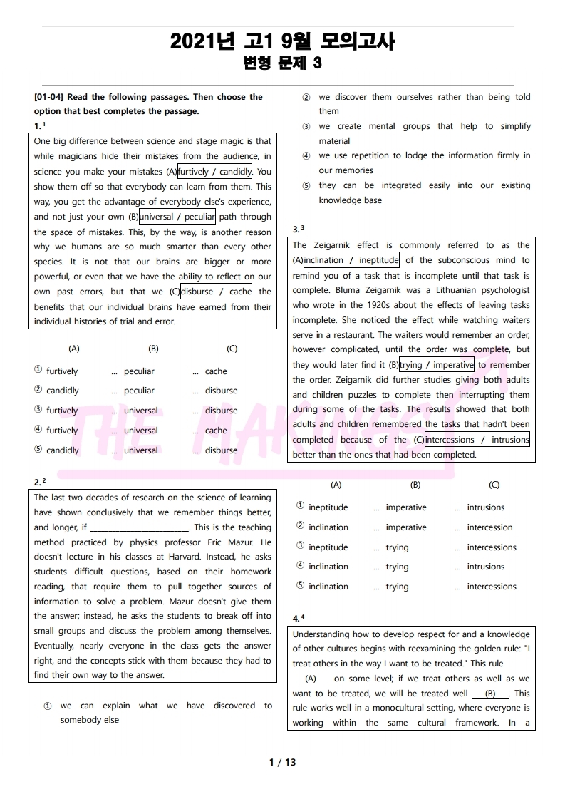 현직에서 강사를 하고 있는 연구진들이 학생들을 위한 최상의 2021년 고1 9월 전국 연합 모의고사 변형 문제 3을 선보입니다.