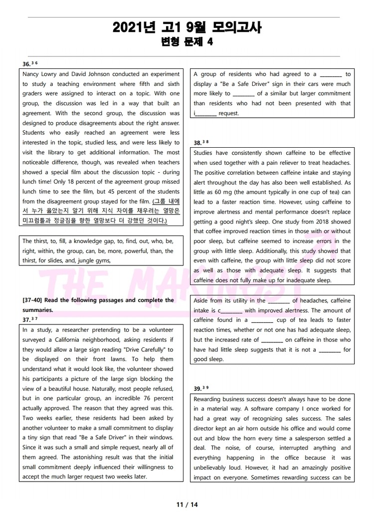 일반 워크북 형태의 문제에서 벗어나 The Makings가 만든 2021년 고1 9월 전국 연합 모의고사 변형 문제 4
