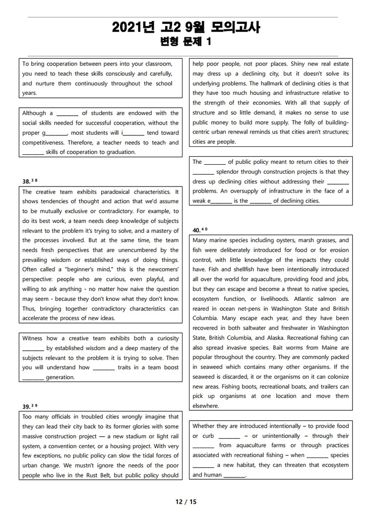 일반 워크북 형태의 문제에서 벗어나 The Makings가 만든 2021년 고2 9월 전국 연합 모의고사 변형 문제 1