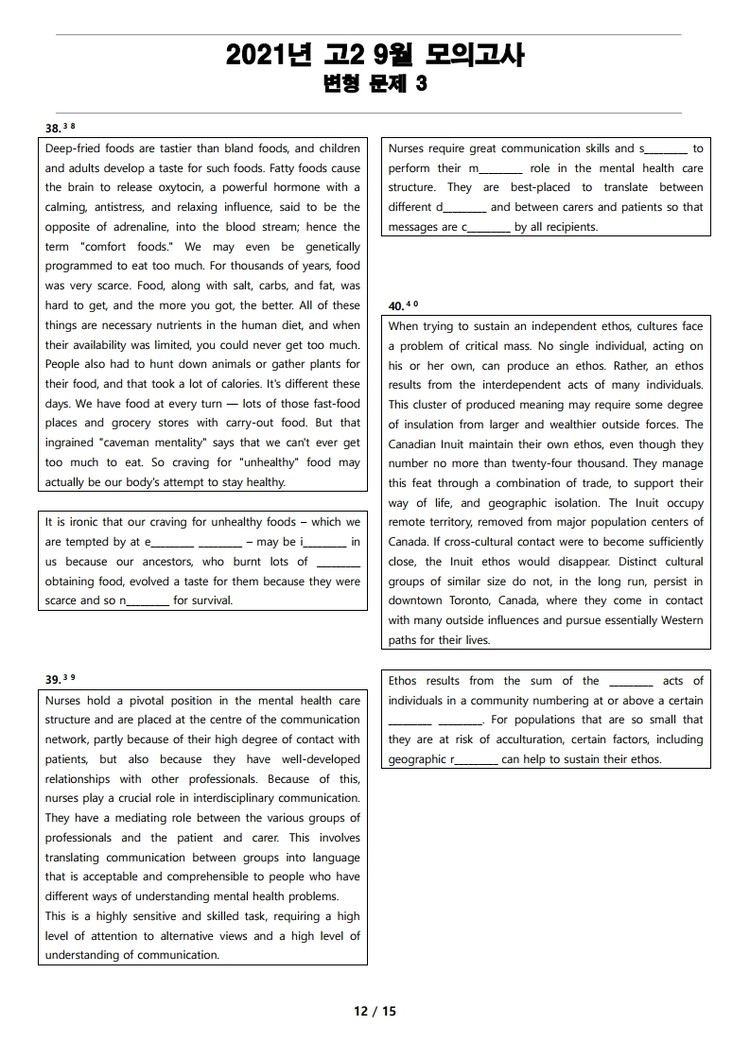 일반 워크북 형태의 문제에서 벗어나 The Makings가 만든 2021년 고2 9월 전국 연합 모의고사 변형 문제 3