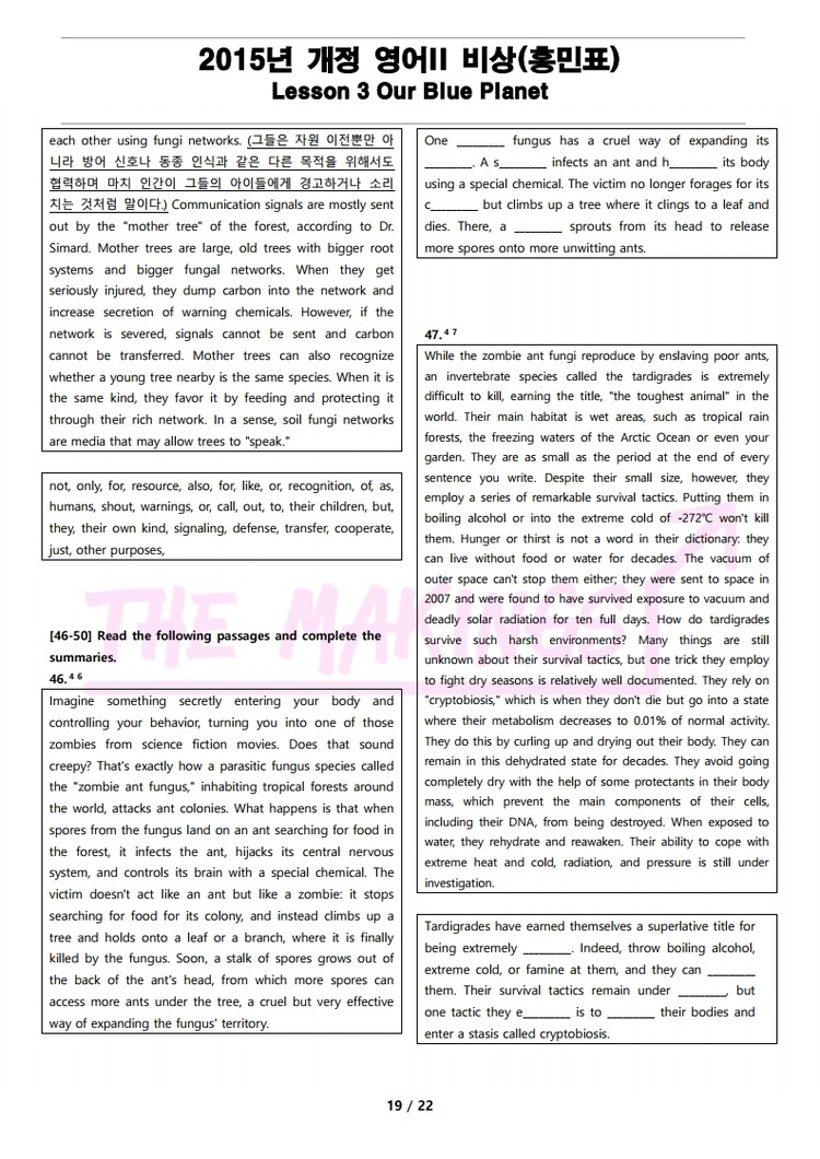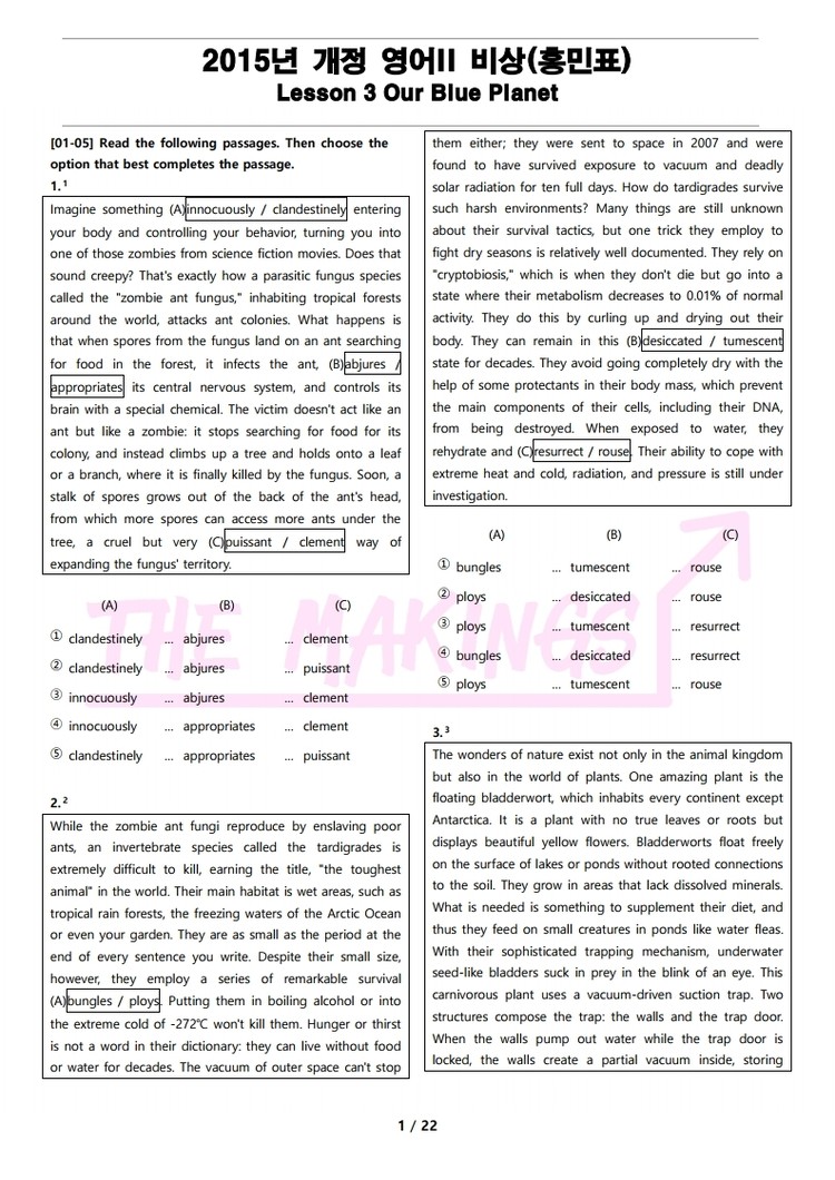 일반 워크북 형태의 문제에서 벗어나 The Makings가 만든 2015년 개정 영어 II 비상(홍민표) 3과 변형 문제는