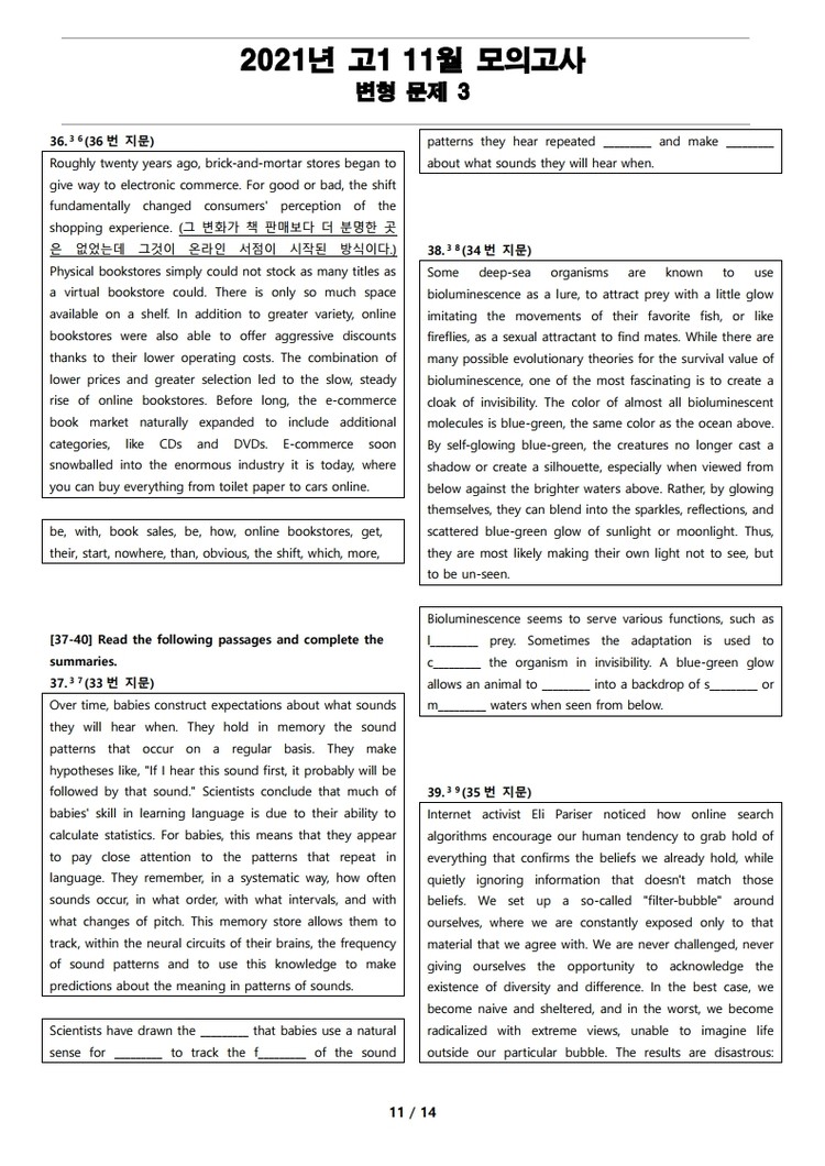 일반 워크북 형태의 문제에서 벗어나 The Makings가 만든 2021년 고1 11월 전국 연합 모의고사 변형 문제 3