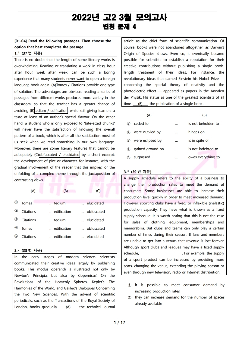 일반 워크북 형태의 문제에서 벗어나 The Makings가 만든 2022년 고2 3월 전국 연합 모의고사 변형 문제 4
