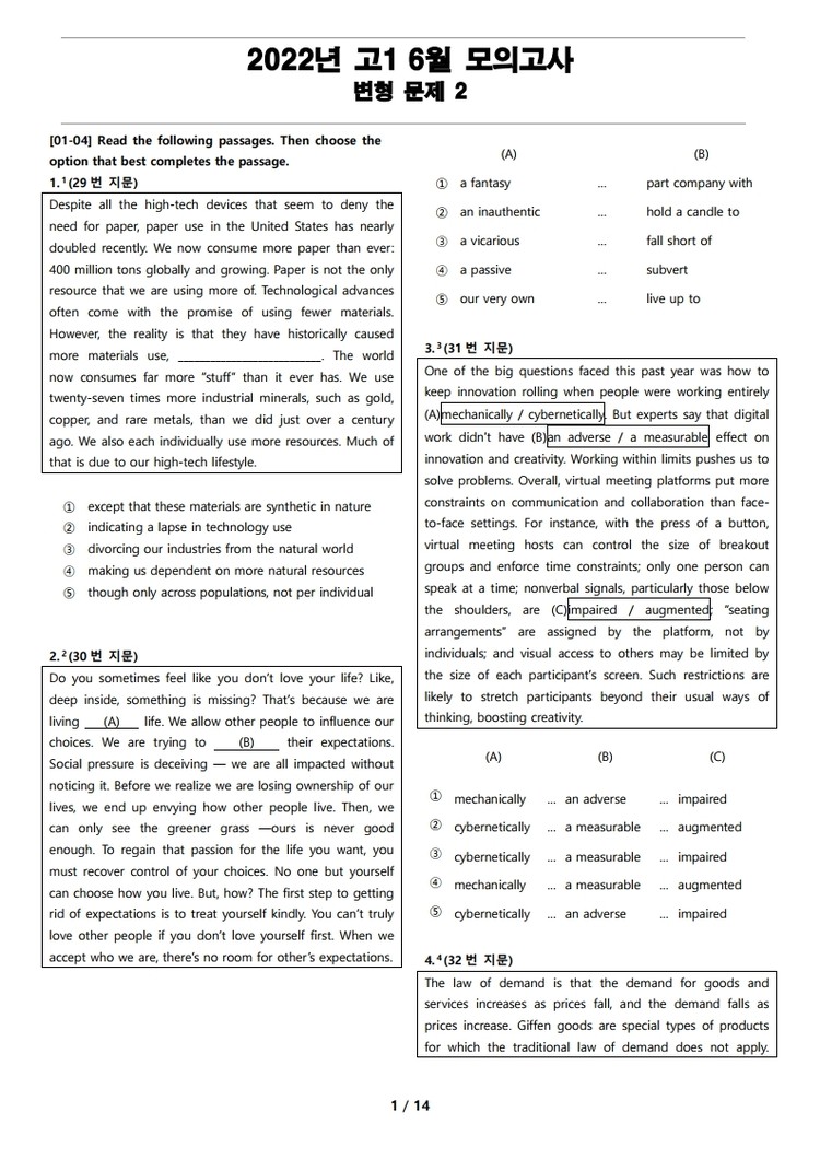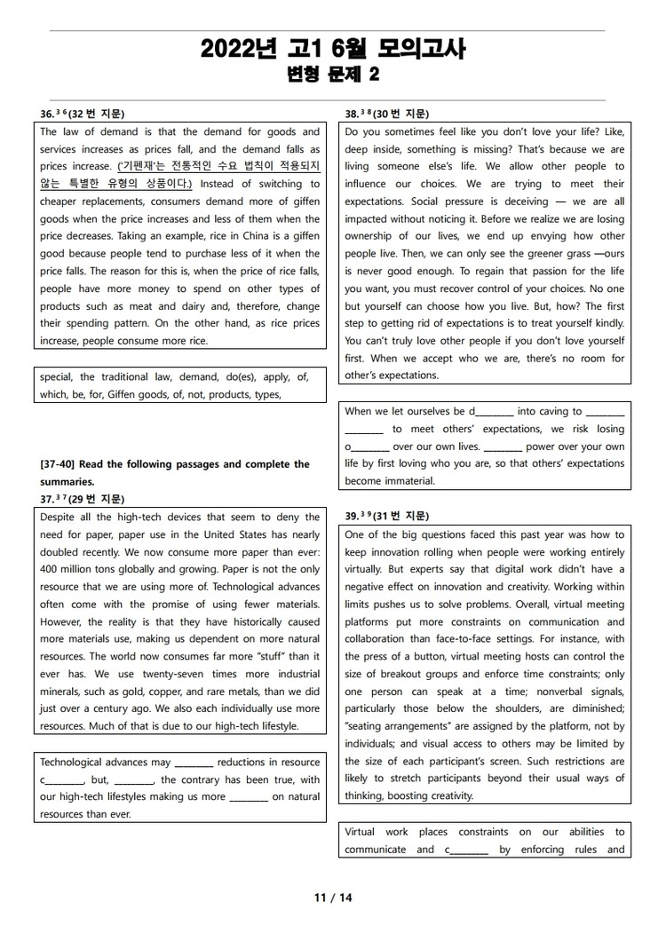 일반 워크북 형태의 문제에서 벗어나 The Makings가 만든 2022년 고1 6월 전국 연합 모의고사 변형 문제 2