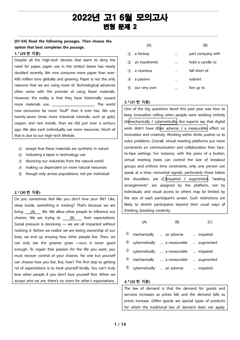 1번 지문(문항 번호 29번)