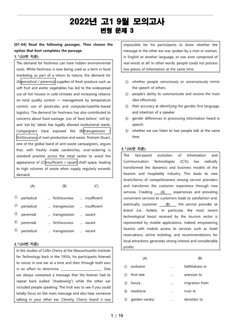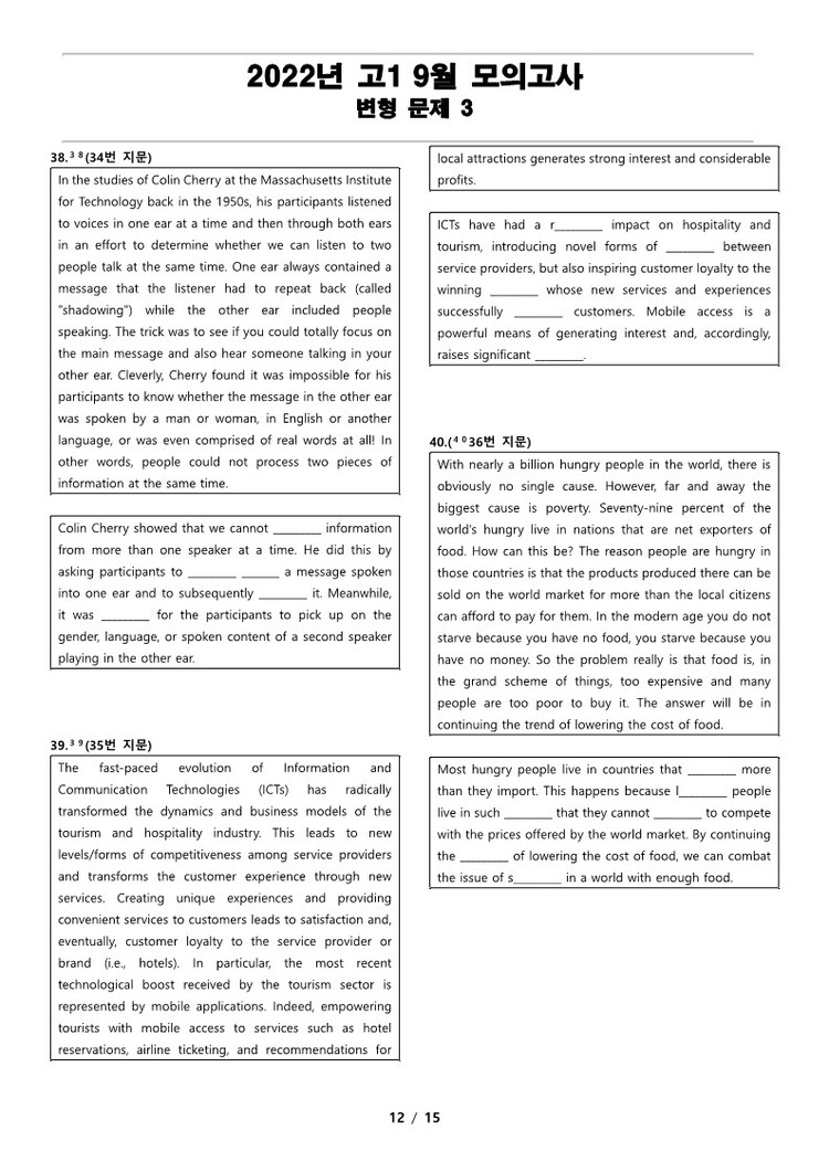 일반 워크북 형태의 문제에서 벗어나 The Makings가 만든 2022년 고1 9월 전국 연합 모의고사 변형 문제 3