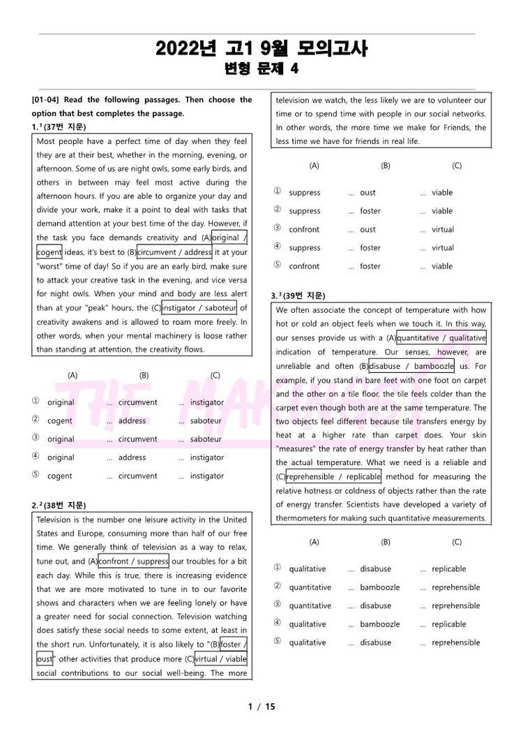 일반 워크북 형태의 문제에서 벗어나 The Makings가 만든 2022년 고1 9월 전국 연합 모의고사 변형 문제 4