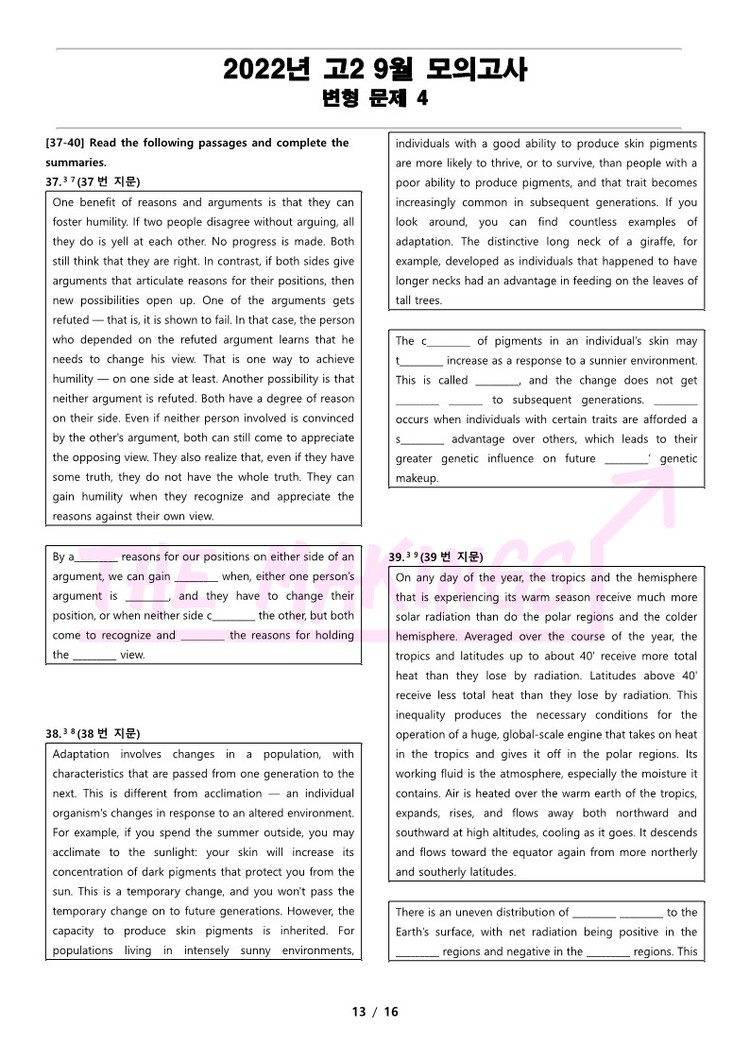 일반 워크북 형태의 문제에서 벗어나 The Makings가 만든 2022년 고2 9월 전국 연합 모의고사 변형 문제 4
