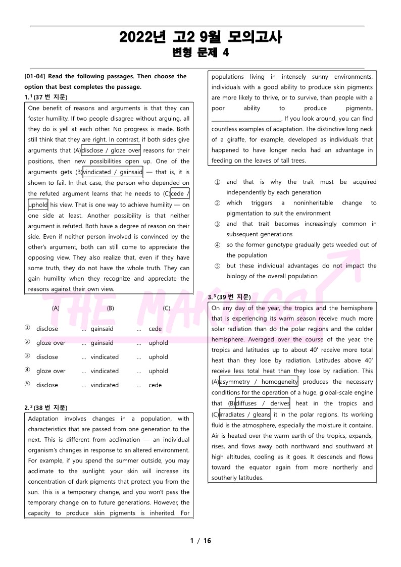 중간고사&기말고사 전에 더메이킹스(The Makings)에서 제작한 2022년 고2 9월 전국 연합 모의고사 변형 문제로 마무리 하세요.