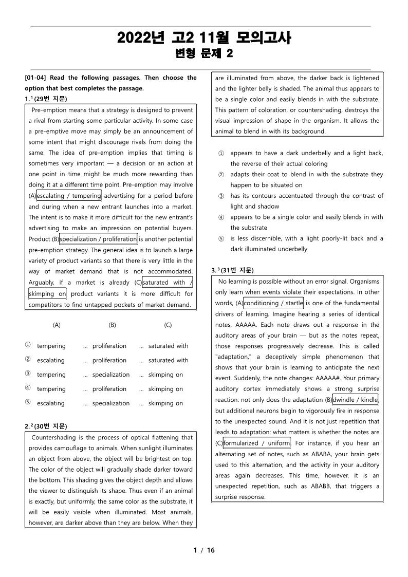 일반 워크북 형태의 문제에서 벗어나 The Makings가 만든 2022년 고2 11월 전국 연합 모의고사 변형 문제 2