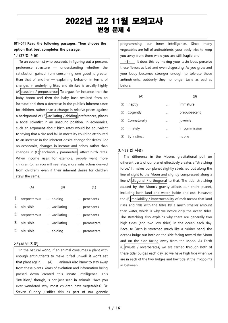 일반 워크북 형태의 문제에서 벗어나 The Makings가 만든 2022년 고2 11월 전국 연합 모의고사 변형 문제 4