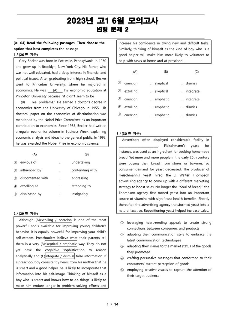 일반 워크북 형태의 문제에서 벗어나 The Makings가 만든 2023년 고1 6월 전국 연합 모의고사 변형 문제 2