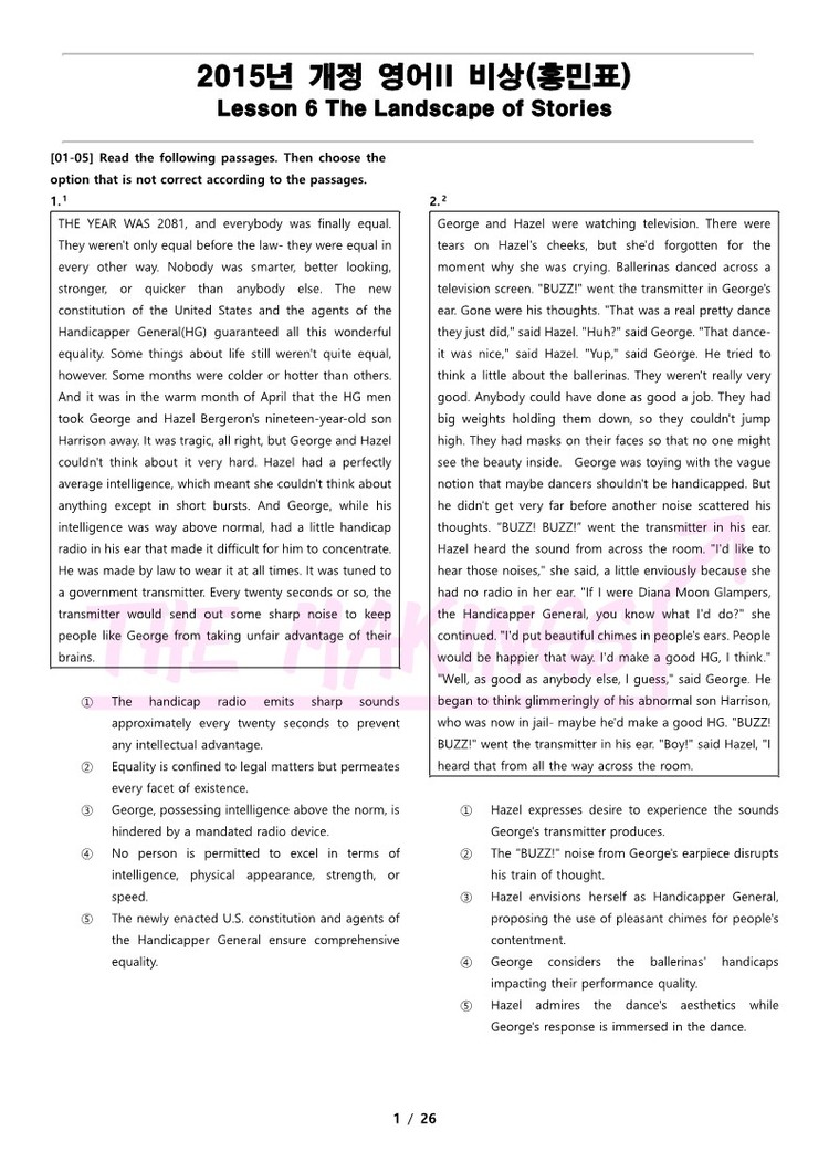 2015년 개정 영어 II 비상(홍민표) 6과 변형 문제 The Landscape of Stories